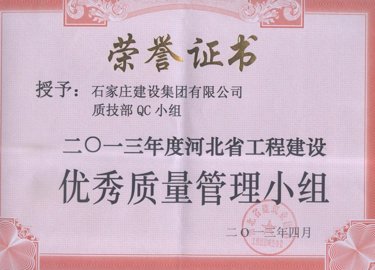 2013年度河北省工程建設優秀質量管理小組
